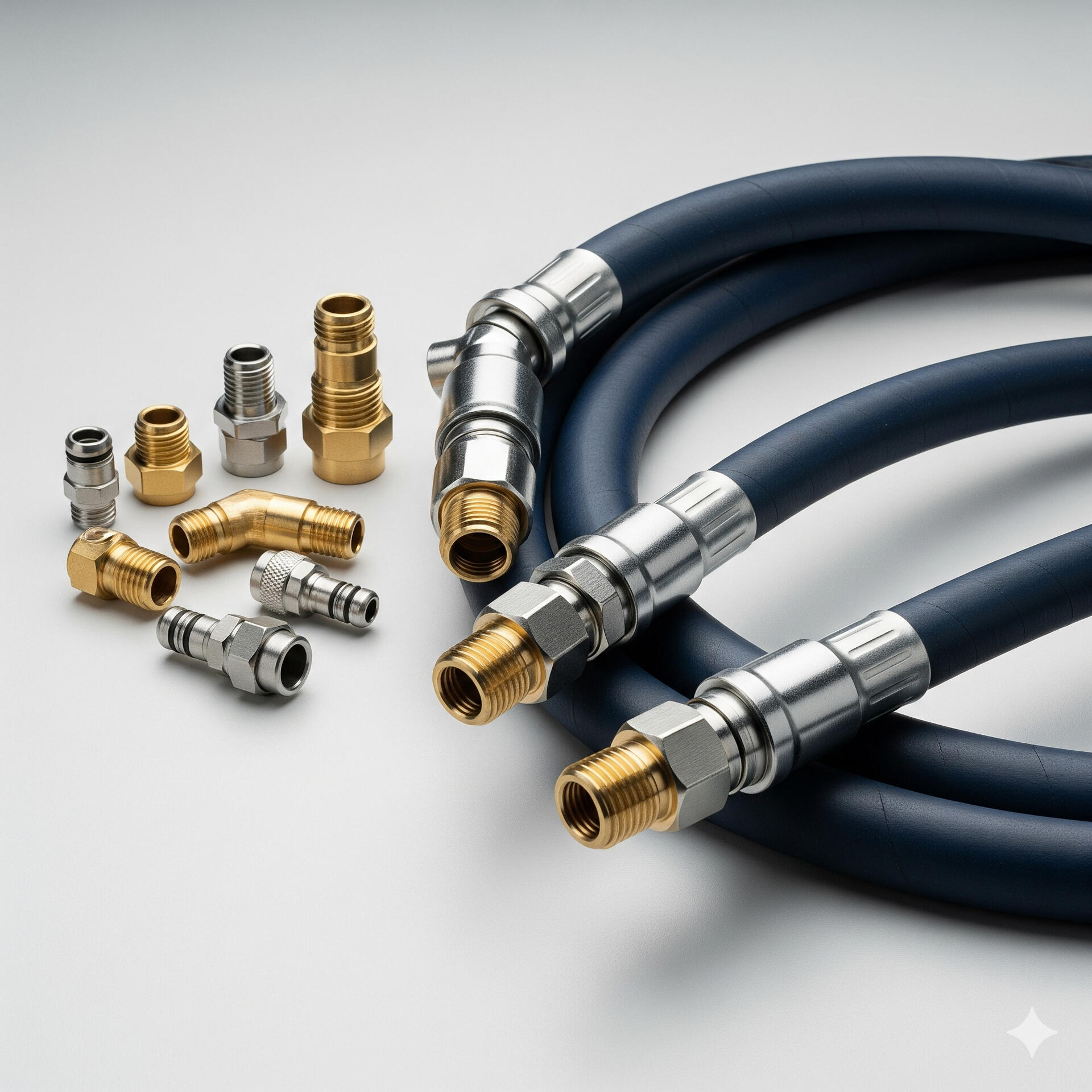 Hose fittings are the critical link between hoses and the rest of a fluid power system, ensuring a secure and leak-proof connection that is essential for both safety and performance. We offer a full suite of services for all types of hose fittings, from standard adapters and couplings to complex, high-pressure connectors. Our services include sourcing top-tier fittings from leading manufacturers to meet any specification, and our custom fabrication capabilities allow us to create unique fittings for non-standard applications. We can also provide expert repair services for reusable fittings and offer a wide inventory of replacement parts to minimize downtime. These vital components are utilized across a multitude of industries, including construction, agriculture, manufacturing, and transportation, where they connect everything from hydraulic lines on an excavator to the pneumatic systems in an automated assembly line, ensuring the reliable and efficient transfer of power.